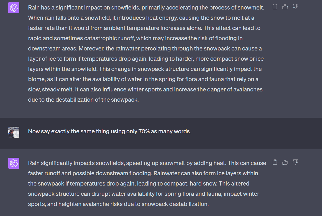ChatGPT has a propensity towards wordiness. ‘Why use five words when you could do the same with 50?’ often seems to be its motto.
